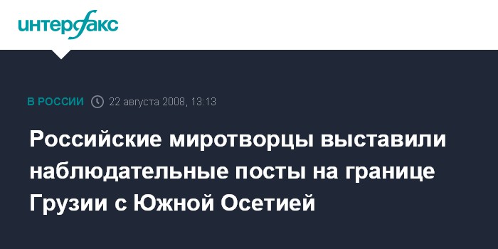 Москва. 22 августа. INTERFAX.RU - По административной границе Грузии с Южной Осетией выставлено 18 миротворческих наблюдательных постов, заявил замглавы Генштаба РФ Анатолий Ноговицын.