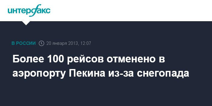 Пекин. 20 января. INTERFAX.RU - Руководство международного аэропорта Пекина отменило 111 рейсов, в том числе 16 международных, из-за сильного снегопада на севере страны, сообщили в воскресенье местные власти. Еще 68 рейсов, включая 11 международных, перенесены на более поздний срок.