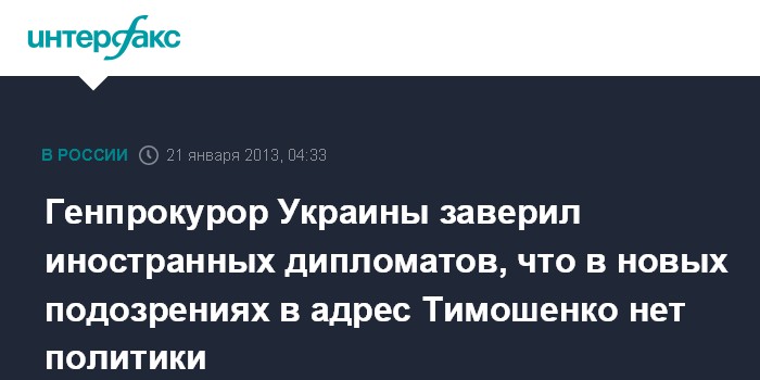 Генпрокурор Украины заверил иностранных дипломатов, что в новых подозрениях в адрес Тимошенко нет политики