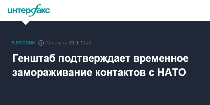 Москва. 22 августа. INTERFAX.RU - Замглавы Генштаба ВС РФ Анатолий Ноговицын подтверждает временное замораживание Россией военных контактов с НАТО.