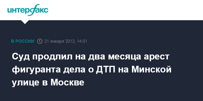 Москва. 21 января. INTERFAX.RU - Арест Александра Максимова, сбившего насмерть семерых человек осенью 2012 года на Минской улице в Москве, продлен еще на два месяца, сообщила "Интерфаксу" в понедельник представитель Главного следственного управления столичной полиции Елена Молотилкина.