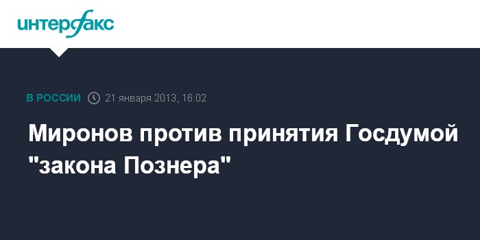 Москва. 21 января. INTERFAX.RU - Лидер "Справедливой России" Сергей Миронов не поддерживает так называемый "анти-познеровский" законопроект, считая неправильной практику конъюнктурного принятия законов.