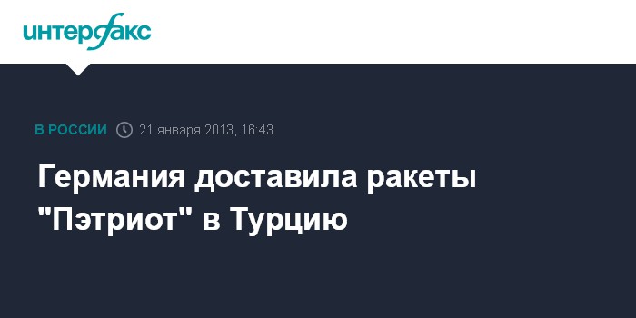 Стамбул. 21 января. INTERFAX.RU - Немецкие военные доставили две батареи зенитных ракетных комплексов "Пэтриот" в турецкий порт Искендерун, сообщает в понедельник агентство The Associated Press