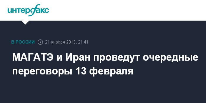 Вена. 21 января. INTERFAX.RU - Представители МАГАТЭ и Ирана, по последним данным, проведут очередной раунд переговоров по ядерной программе Исламской республики 13 февраля в Тегеране, сообщают в понедельник западные СМИ со ссылкой на представителя МАГАТЭ Джилл Тюдор.
