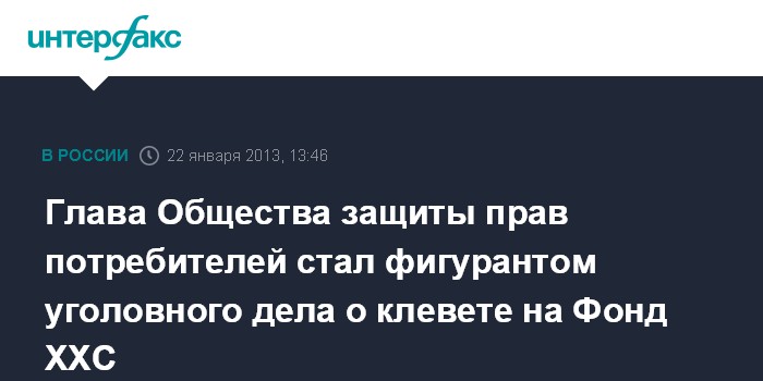 Глава Общества защиты прав потребителей стал фигурантом уголовного дела о клевете на Фонд ХХС