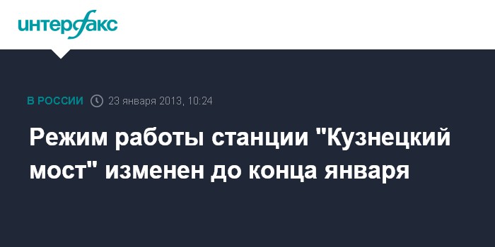 Режим работы станции "Кузнецкий мост" изменен до конца января