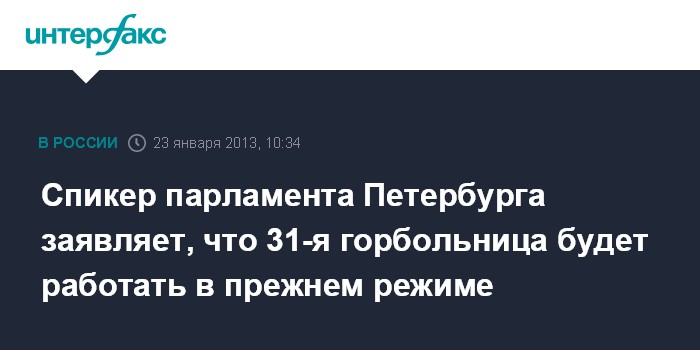 Санкт-Петербург. 23 января. INTERFAX.RU - Городская клиническая больница №31 Петербурга будет работать в прежнем режиме, заявил в среду председатель Законодательного собрания Петербурга Вячеслав Макаров.