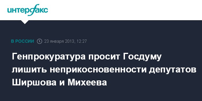 Генпрокуратура просит Госдуму лишить неприкосновенности депутатов Ширшова и Михеева