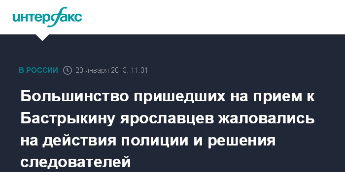 Большинство пришедших на прием к Бастрыкину ярославцев жаловались на действия полиции и решения следователей