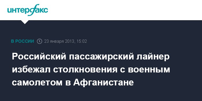 Российский пассажирский лайнер избежал столкновения с военным самолетом в Афганистане