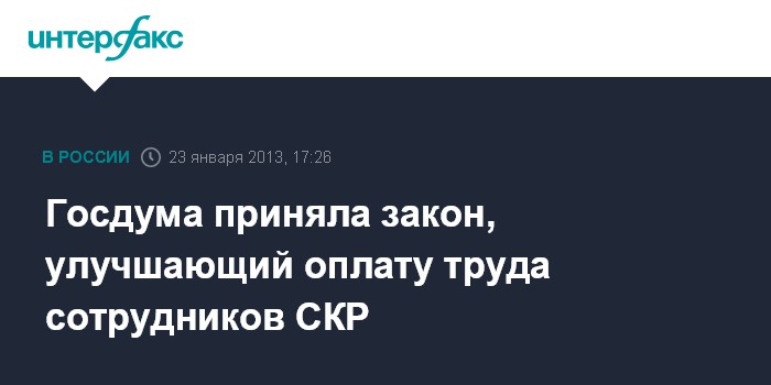 Москва. 23 января. INTERFAX.RU - Госдума приняла во втором и в третьем чтениях закон "Об улучшении денежного содержания сотрудников Следственного комитета РФ".