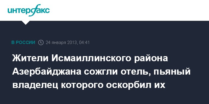 Жители Исмаиллинского района Азербайджана сожгли отель, пьяный владелец которого оскорбил их