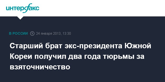 Сеул. 24 января. INTERFAX.RU - Брат бывшего южнокорейского президента Ли Сан Дык, в четверг приговорен к двум годам тюремного заключения по обвинению в коррупции.