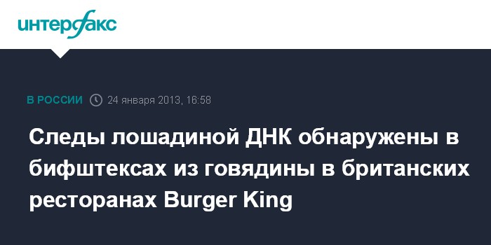 Следы лошадиной ДНК обнаружены в бифштексах из говядины в британских ресторанах Burger King