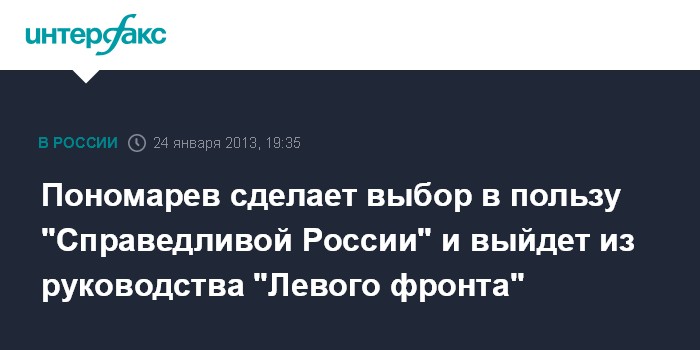 Москва. 24 января. INTERFAX.RU - Депутат-"эсер" Илья Пономарев готов покинуть руководящие органы "Левого фронта" в связи с призывом руководства "Справедливой России" определиться с выбором между партией и этой организацией.