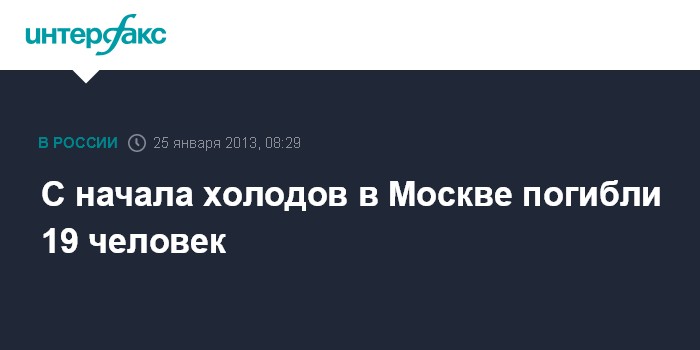 По слвоам источника, в Москве зафиксировано 19 случаев переохлаждения с летальным исходом, в больницы попали 215 человек.