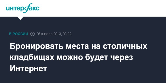 Москва. 25 января. INTERFAX.RU - Москвичи вскоре смогут бронировать места на кладбищах для умерших близких по Интернету, сообщил заместитель руководителя департамента торговли и услуг Москвы Андрей Марсий в интервью "Российской газете", опубликованном в пятницу.