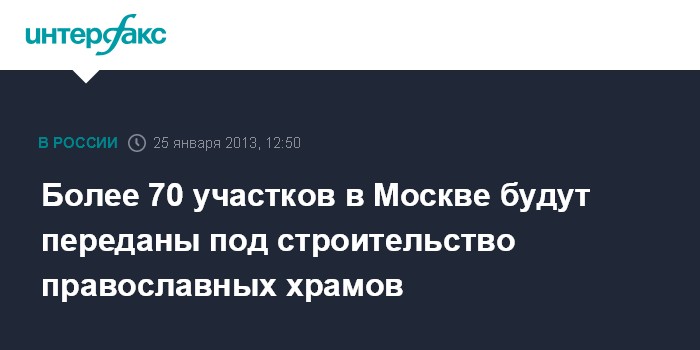 Более 70 участков в Москве будут переданы под строительство православных храмов