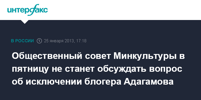 Общественный совет Минкультуры в пятницу не станет обсуждать вопрос об исключении блогера Адагамова