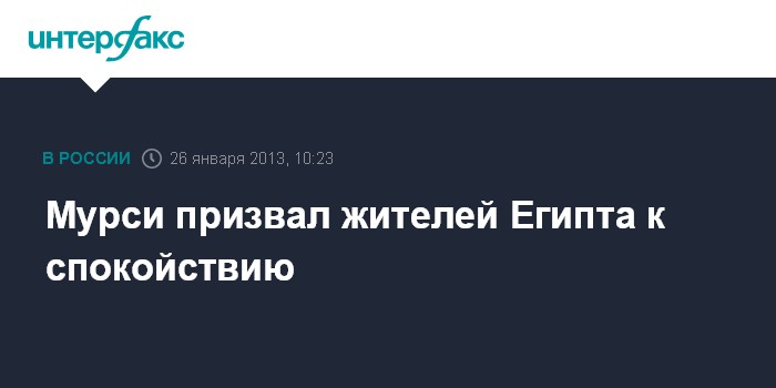 Каир. 26 января. INTERFAX.RU - Президент Египта Мухаммед Мурси в ночь на субботу призвал граждан страны отказаться от насилия. "Я призываю всех жителей, которые разделяют благородные цели революции - свободное и мирное выражение своих мнений, - отказаться от насилия на словах и в действиях", - говорится в сообщении, которое М.Мурси разместил на своих страничках в Твиттере и Фейсбуке.