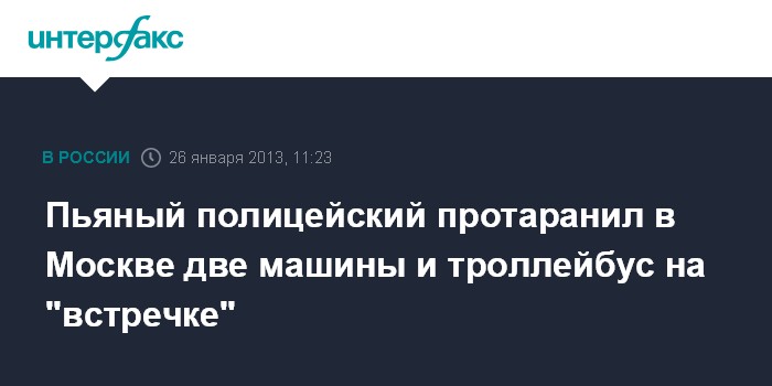 Пьяный полицейский протаранил в Москве две машины и троллейбус на "встречке"