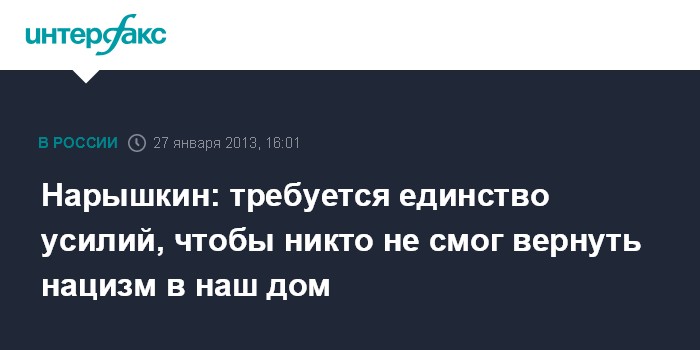 Нарышкин: требуется единство усилий, чтобы никто не смог вернуть нацизм в наш дом