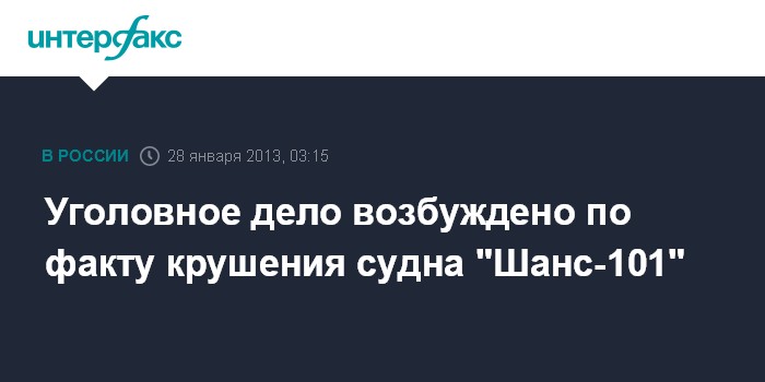 Уголовное дело возбуждено по факту крушения судна "Шанс-101"