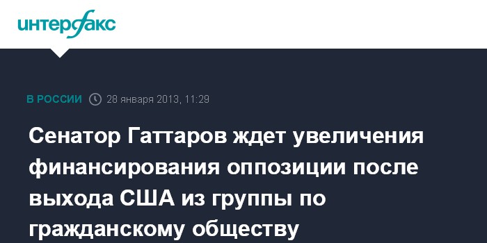 "После того, как США заявили о выходе из этой группы, нам следует ожидать увеличения финансирования на поддержку российской оппозиции, и это будут делать не напрямую, а через сопредельные к России страны Балтии и Украину. Также следует ожидать атак со стороны Вашингтона по поводу того, что в России мало демократии", - заявил в субботу "Интерфаксу" член комиссии Совета Федерации по взаимодействию с институтами гражданского общества Руслан Гаттаров.