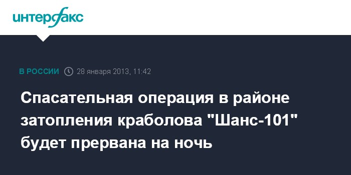 Владивосток. 28 января. INTERFAX.RU - Авиация и наземные группы с наступлением темноты приостановят операцию по поиску моряков с затонувшего в Японском море судна "Шанс-101", сообщил сотрудник пресс-службы ГУ МЧС по Приморскому краю Алексей Куликов.