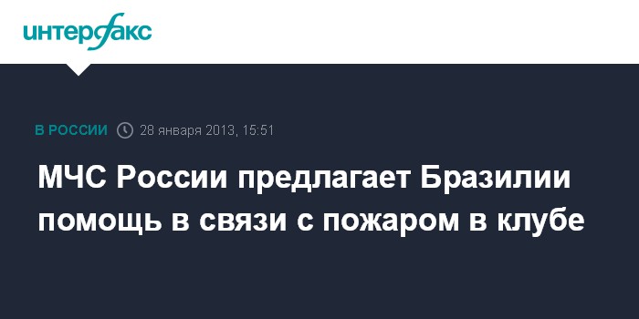 Москва. 28 января. INTERFAX.RU - Российские спасатели готовы оказать помощь Бразилии, где пожар на дискотеке унес жизни более 230 человек.