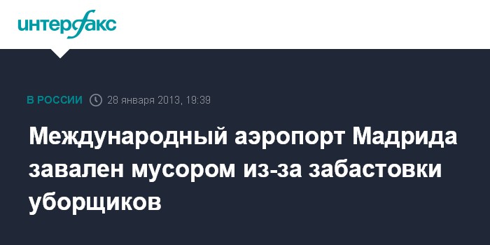 Мадрид. 28 января. INTERFAX.RU - Главный международный аэропорт Мадрида "Барахас" оказался завален мусором в результате забастовки сотрудников уборочных компаний, сообщила в понедельник испанская газета El Pais.