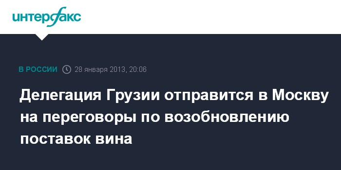 Тбилиси. 28 января. INTERFAX.RU - Делегация Грузии уже получила визы на поездку в Москву, где на 4 февраля запланированы переговоры по вопросам, связанным с возобновлением поставок грузинского вина, минеральной воды и другой продукции на рынок РФ.