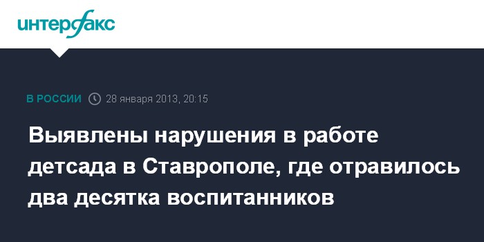 Ставрополь. 28 января. INTERFAX.RU - Прокуратура вынесла представление по результатам проверки в детском саду "Русь" в Ставрополе, 18 воспитанникам которого понадобилась медицинская помощь.