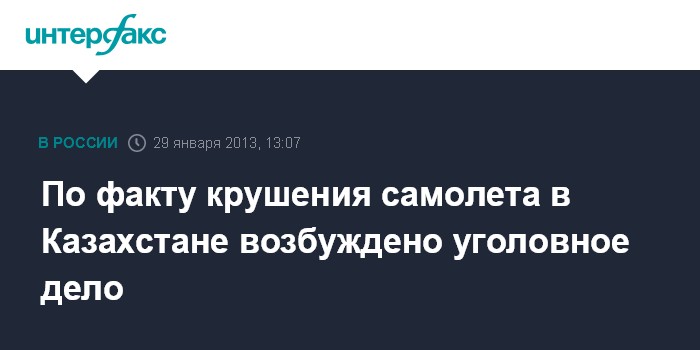 По факту крушения самолета в Казахстане возбуждено уголовное дело