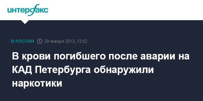 Санкт-Петербург. 29 января. INTERFAX.RU - Судмедэксперты обнаружили в крови погибшего на КАД Петербурга Григория Кочнева синтетический препарат, вызывающий наркотическое опьянение, сообщил пресс-служба городского СКР во вторник.