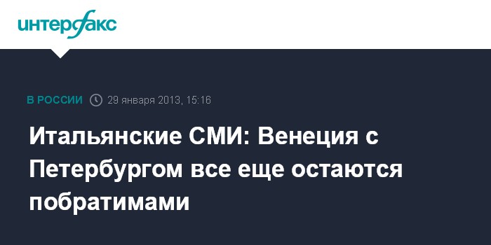 Итальянские СМИ: Венеция с Петербургом все еще остаются побратимами