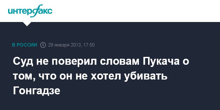 Киев. 29 января. INTERFAX.RU - Печерский райсуд Киева критично отнесся к показаниям подсудимого экс-начальника департамента наружного наблюдения МВД Украины Алексея Пукача о том, что он не хотел смерти журналиста Георгия Гонгазде.