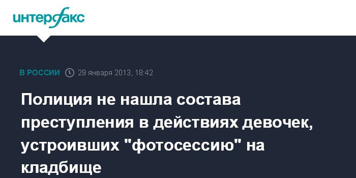 Нижний Новгород. 29 января. INTERFAX.RU - Полиция в Нижегородской области не стала возбуждать уголовное дело в отношении несовершеннолетних, которые фотографировались на кладбище в поселке Шатки.