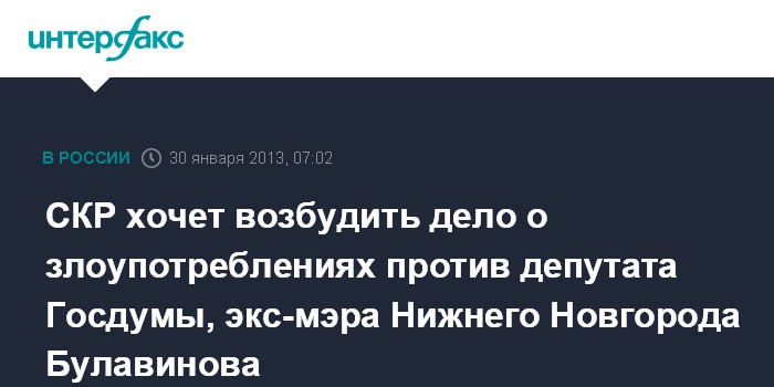 Причиной процедуры, по его словам, стала проведенная управлением СКР по Нижегородской области проверка по поступившим из регионального УФСБ материалам против В.Булавинова "по факту злоупотребления им должностными полномочиями в период работы в должности главы администрации Нижнего Новгорода".