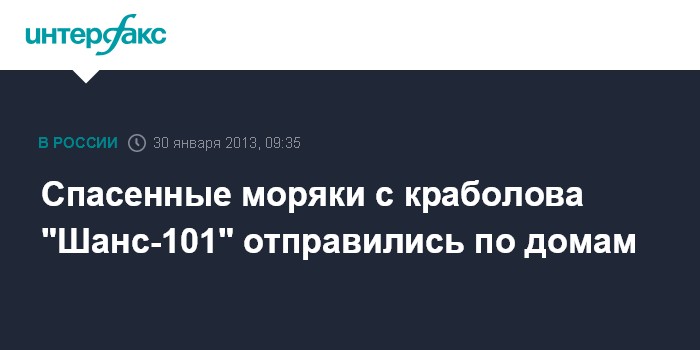 Владивосток. 30 января. INTERFAX.RU - Судовладелец аварийного "Шанс-101" доставил по домам из поселка Пластун трех спасенных моряков судна, которое перевернулось в Японском море в воскресенье.