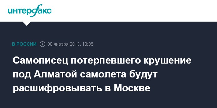 Алматы. 30 января. INTERFAX.RU - Бортовой самописец потерпевшего крушение вблизи Алматы пассажирского самолета CRJ-200 отправят на экспертизу в Москву, сообщил глава правительственной комиссии по расследованию причин авиакатастрофы, первый вице-премьер Казахстана Бакытжан Сагинтаев.