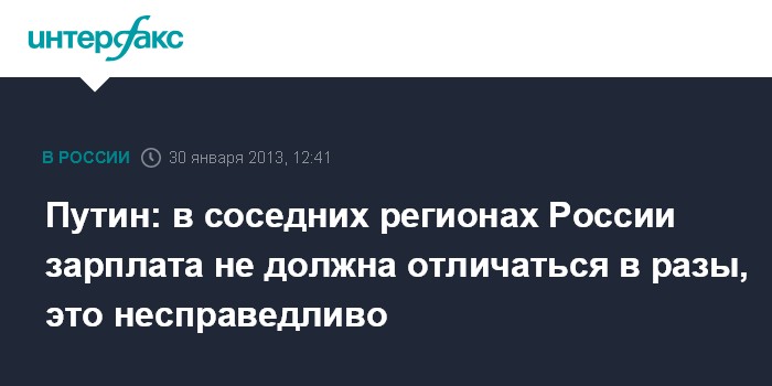"Ничего удивительного, если такие отличия, скажем, в регионах Дальнего Востока или Крайнего Севера или где-то в центральных регионах страны. Там и уровень жизни другой, и стоимость жизни другая, понятно. На северах побольше получают - тоже не так много, как бы хотелось, но всё-таки побольше чем, скажем, в Центральной части России. Но, когда в соседних регионах зарплата в разы отличается, это никуда не годится, это несправедливо", - подчеркнул глава государства.