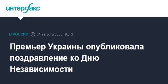 Киев. 24 августа. INTERFAX.RU - Премьер-министр Украины Юлия Тимошенко опубликовала поздравление ко Дню Независимости Украины.