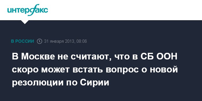 В Москве не считают, что в СБ ООН скоро может встать вопрос о новой резолюции по Сирии