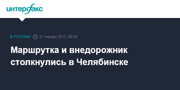 Челябинск. 31 января. INTERFAX.RU - Два пассажира маршрутного такси пострадали в Челябинске в результате его столкновения с внедорожником утром в четверг, сообщил агентству "Интерфакс" представитель пресс-службы ГИБДД города Виталий Мордовин.