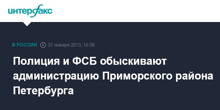 Санкт-Петербург. 31 января. INTERFAX.RU - В администрации Приморского района Санкт-Петербурга проводятся оперативно-следственные действия, сообщили "Интерфаксу" в пресс-службе регионального УФСБ в четверг.