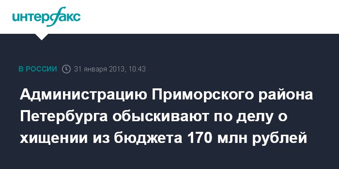 Администрацию Приморского района Петербурга обыскивают по делу о хищении из бюджета 170 млн рублей