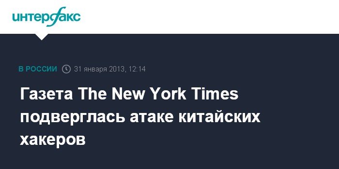 Москва. 31 января. INTERFAX.RU - Американская газета The New York Times сообщила о том, что несколько месяцев подвергалась атакам хакеров, которые, как предполагает издание, действовали из Китая.