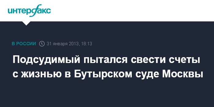 Подсудимый пытался свести счеты с жизнью в Бутырском суде Москвы