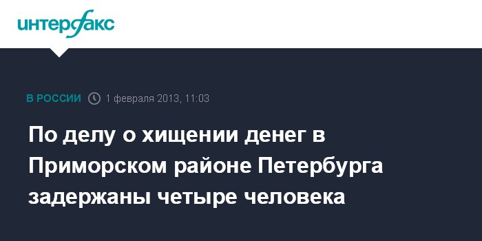 По делу о хищении денег в Приморском районе Петербурга задержаны четыре человека